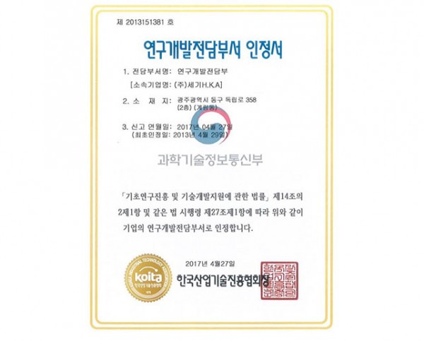 연구개발전담부서 인정서