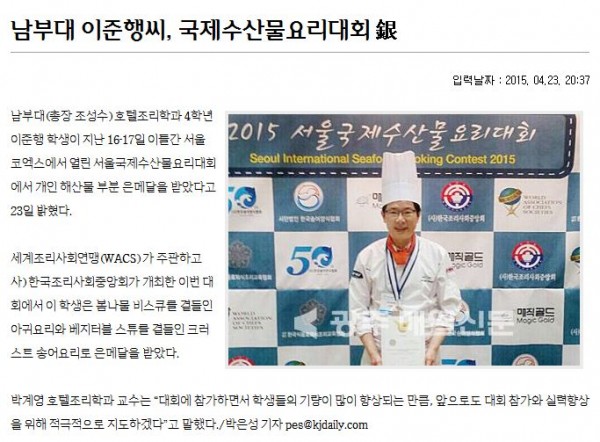 2015 제수산물요리대회은상수상